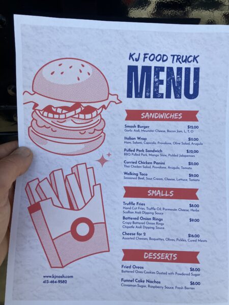 - - FOOD 12-5pm KJ Nosh (menu); Cheese and crackers