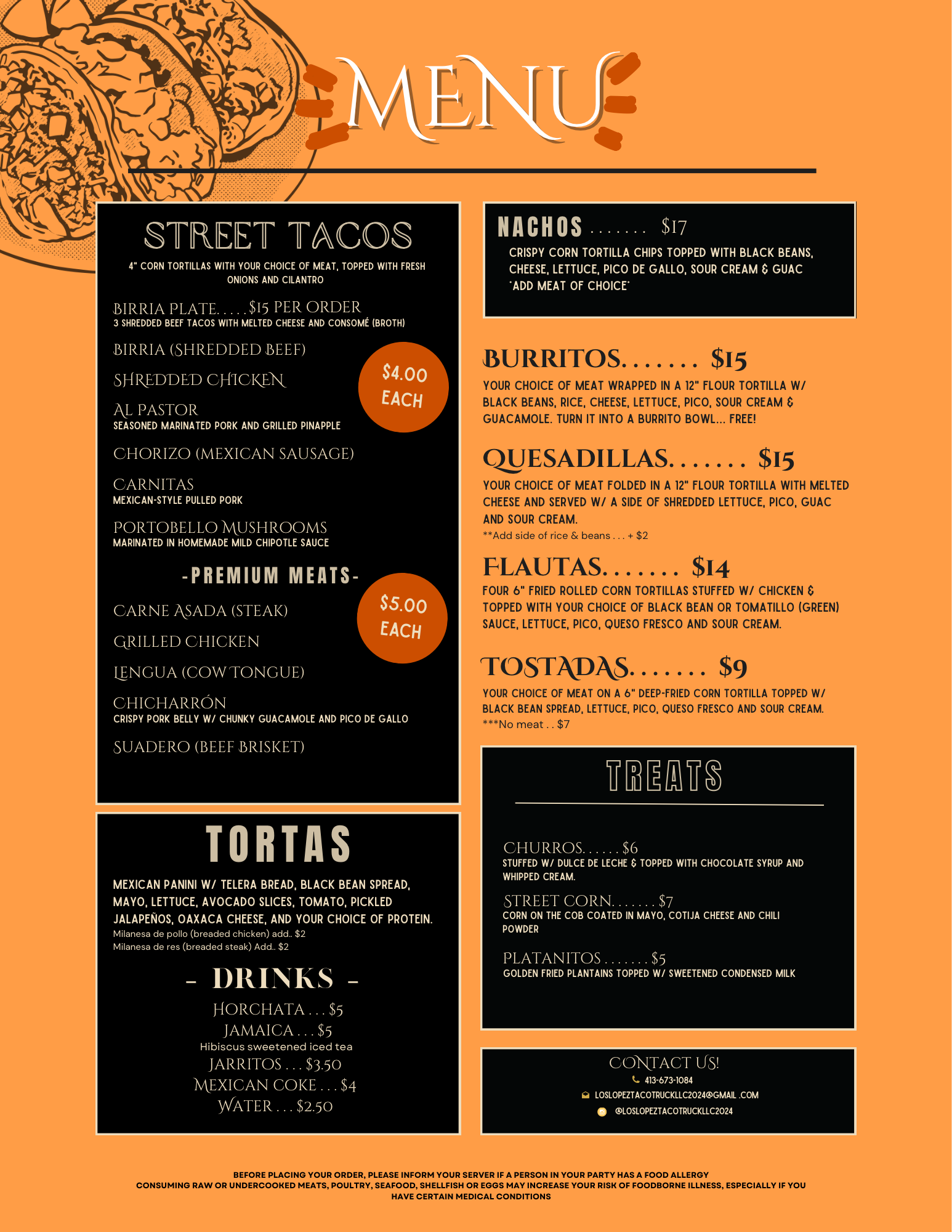 - - FOOD 12-5pm Los Lopez (menu); Cheese and crackers