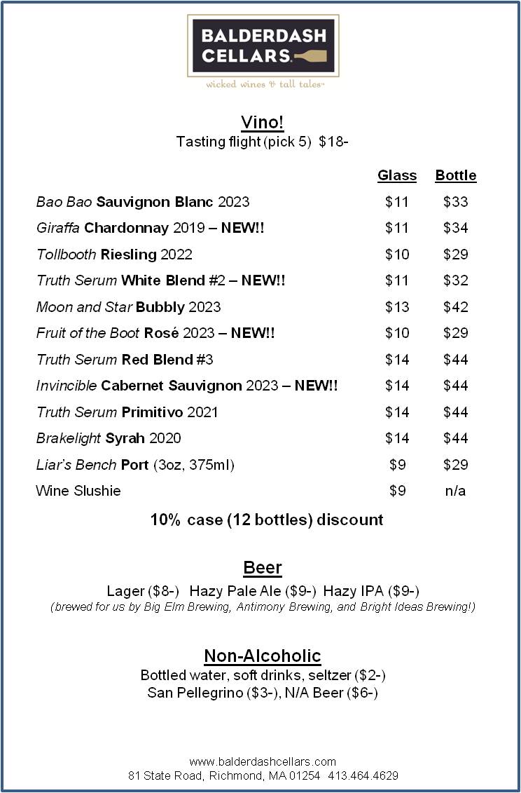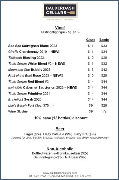Not a wine drinker, no problem. We offer 2-3 rotating beers on tap specially brewed for us by Big Elm Brewing in Sheffield, MA and Bright Ideas Brewing in North Adams, MA & Westfield, MA, and Antimony Brewing in Lenox, MA!